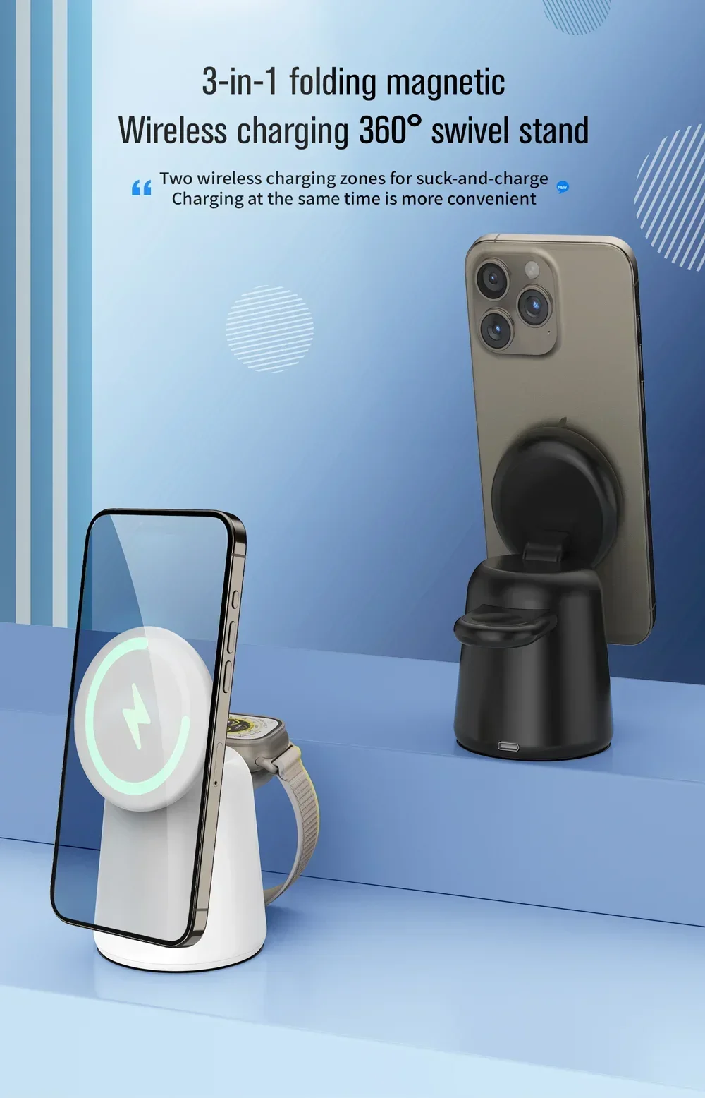 3 in 1 Magnetic Wireless Charger Stand For Magsafe iPhone 15 14 13 12 Pro Max Airpods IWatch 9 8 7 6 Fast Charging Dock Station