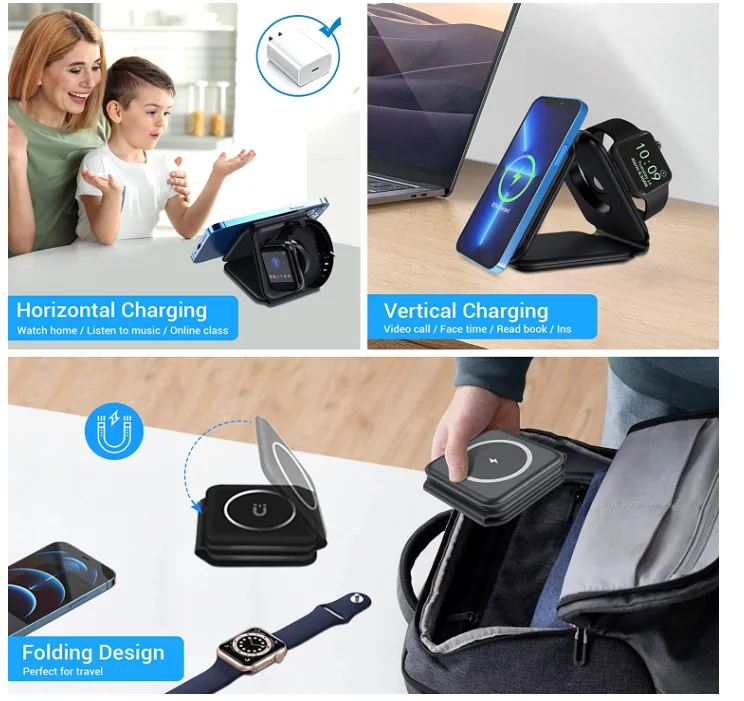 3 in 1 Wireless Charger Magnetic Foldable Charging Station Travel Charger for Charger Power Adapter Caricatore Senza Fili