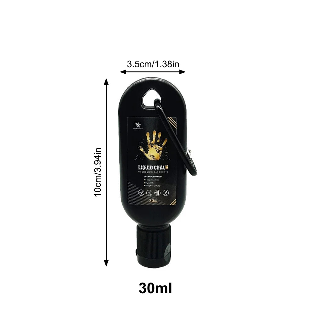 Features: 1.Compact Travel Bottle: This liquid chalk comes in a convenient travel-size bottle, ensuring your grip remains firm and performance excels. Ideal for athletes and fitness enthusiasts seeking reliable grip enhancement. 2.Versatile Grip Enhancer: This gymnastics magnesium powder is perfect for improving grip in weightlifting, gyms, climbing, pole dancing and other sports or workouts, ensuring a safe and confident hold every time. 3.Innovative Formula: Our sports magnesium powder dries quickly, providing a long-lasting and reliable grip. It enhances your performance and safety in pickleball, golf, tennis, workouts, and more. 4.Easy Dispensing Design: The bottle of our fitness liquid chalk features a convenient flip cap for smooth application. This practical feature ensures easy use whether at home or on the go. 5.Reliable Grip Solution: Keep your hands dry and secure with our liquid magnesium powder. Designed for athletes, this product ensures optimal performance in various sports and fitness activities. Specification: Origin: Mainland China Material: Liquid Magnesium Powder Color: Black Bottle Capacity: 30ml/50ml Liquid Bottle Size: 30ml Height 10cm/3.94in, Width 3.5cm/1.38in, Thickness 2.5cm/0.98in 50ml Height 11.4cm/4.49in, Width 5cm/1.97in, Thickness 3.3cm/1.30in Use: Mountaineering, Rock Climbing, Fitness, Gymnastics, Weightlifting, Pole Dancing, Etc.