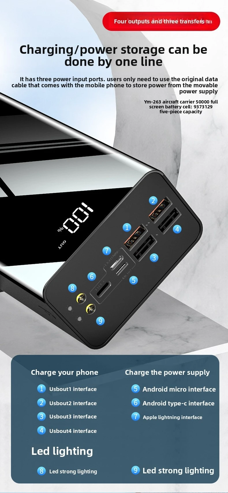 50000mAh Portable External Battery with LED Lights Digital Display Spare Battery for IPhone MINI PRO MAX Xiaomi Mobile Phone