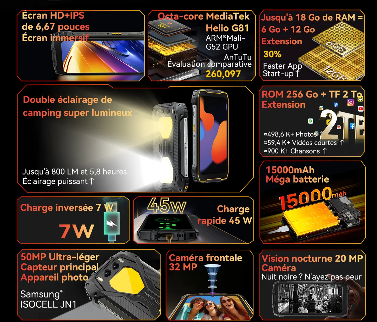 BLACKVIEW BV7300 [No EU Charger] 18GB (6 + 12) 256GB 15000mAh 45W Fast Charge 6.67" Android 14 Smartphone
