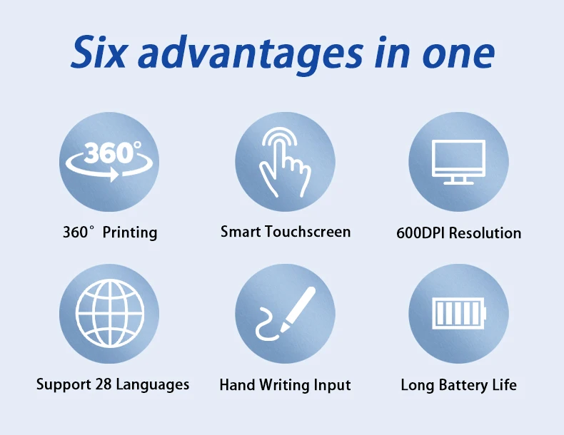 - One-click Printing: 600dpi maximum print resolution, 360° all-round printing.