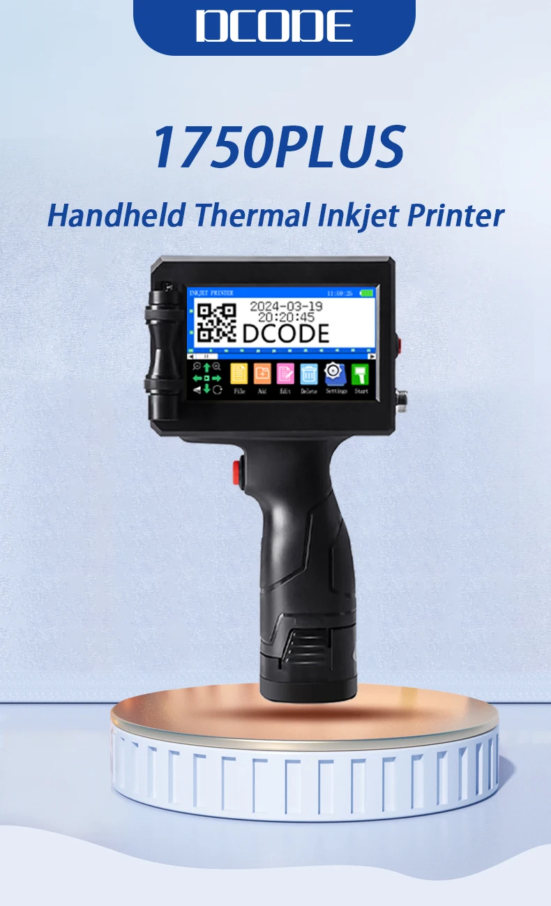 DCODE 1750PLUS 12.7/25.4mm Portable Handheld Inkjet Printer Text QR Barcode Label Printer Batch Number Logo Date Coding Machine