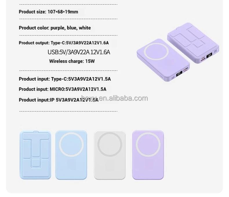 Portable, mini, light, thin, magnetic wireless 15W fast charging,USB QC3.0,PD22.5W |