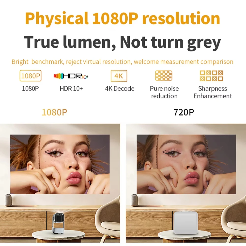 2.Native 1080p,Max 4K,3D,MEMC/HDR10+:The YINZAM HY400 projector has a natural 1080P image quality, with a maximum image quality of
