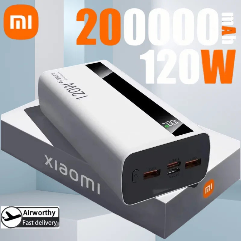 XIAOMI 200000mAh High Capacity 120W PowerBank Super Fast Charging Portable External Battery Powerbank For Iphone Samsung Huawei